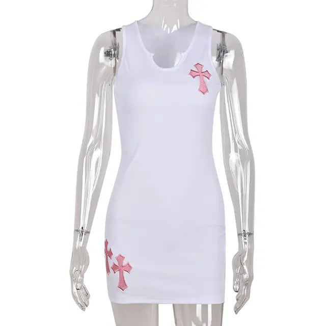 Adquiera estilo con confianza mientras se pone este vestido sin mangas adornado con un elegante estampado cruzado en un atemporal blanco y negro. Versátil y moderno, este vestido es una incorporación imprescindible al guardarropa de cualquier fashionista, ya que permite pasar sin esfuerzo del día a la noche.