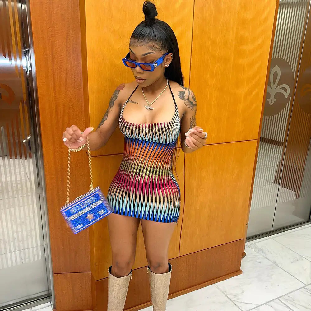 • Luce deslumbrante con el minivestido de malla degradada. Este minivestido está diseñado a la perfección para mostrar tus curvas y mantenerte cómoda. Ideal para salidas formales o informales, el diseño atrevido y único presenta escote halter, silueta sin mangas y estilo sin espalda con cierre de cordones. Confeccionado con poliéster de alta calidad, este vestido presenta un patrón geométrico degradado que crea un efecto llamativo. Diseñado por expertos con un corte ceñido/entallado y justo por encima de la rodilla, este elegante minivestido hará que todas las miradas giren dondequiera que vayas. Date una actualización de moda con el elegante y sofisticado minivestido de malla degradada.
