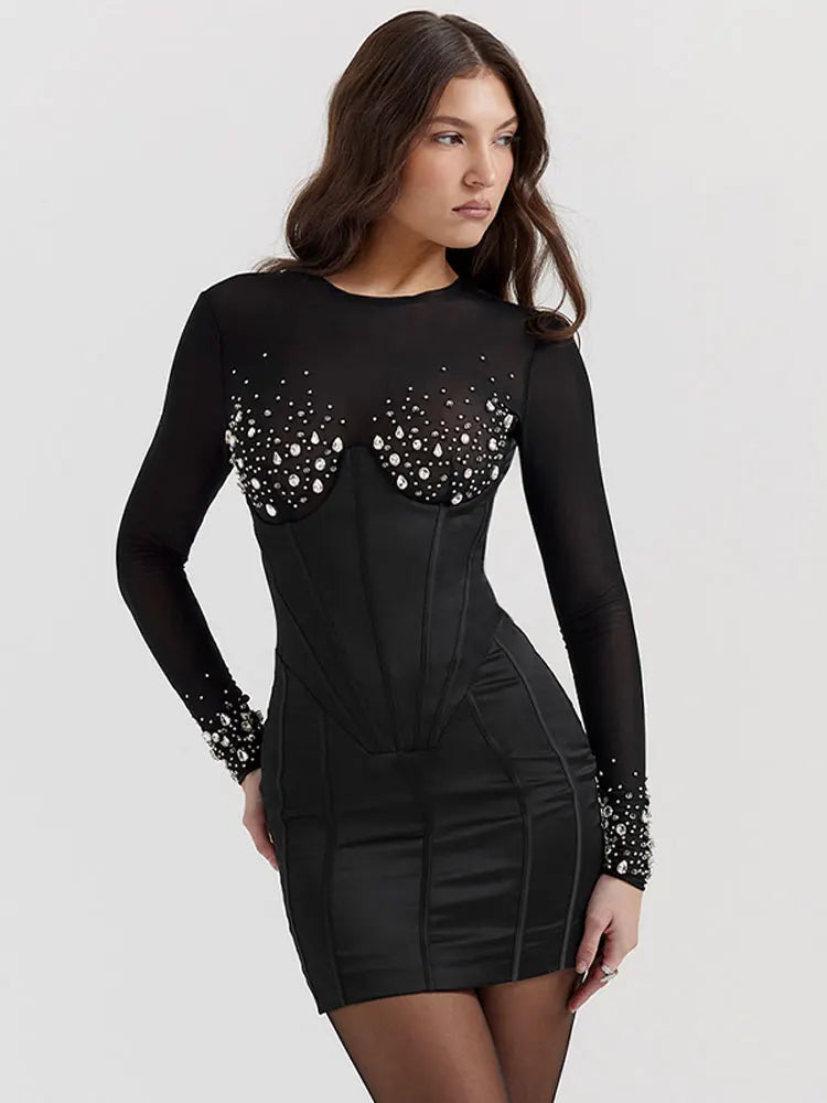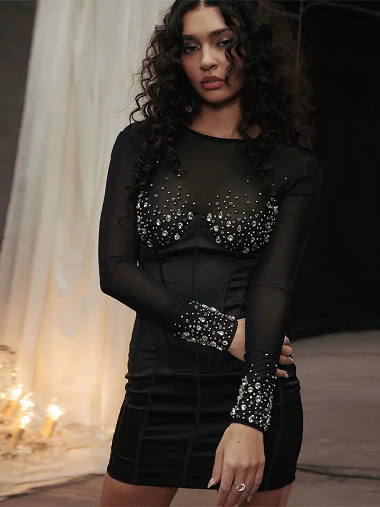 Nuestro minivestido Patchwork es una delicia visual, con una fusión armoniosa de patrones atrevidos y pedrería brillante. Cada detalle está cuidadosamente colocado para crear un efecto visual sorprendente que llame la atención y deje una impresión duradera.