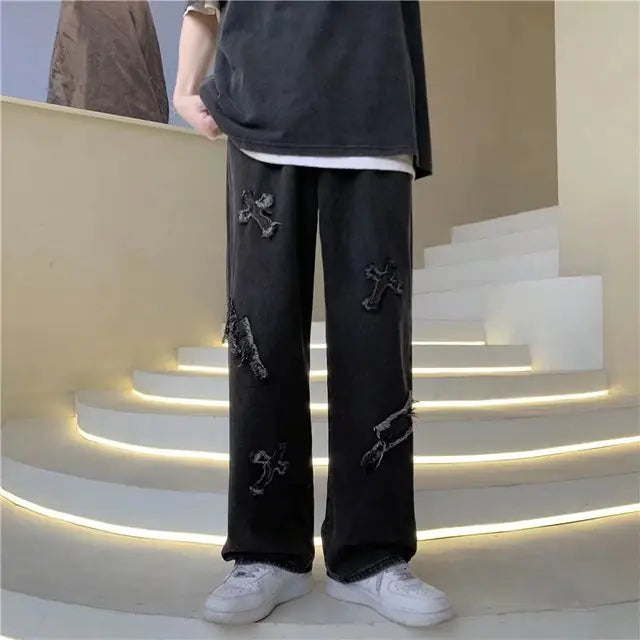 Upgrade your denim game and embrace the hip-hop spirit of Hong Kong street style with our Men's High Street Jeans Long Pants. It's time to make a bold fashion statement and express your unique style with confidence. Grab yours today and step into the world of urban fashion like never before!